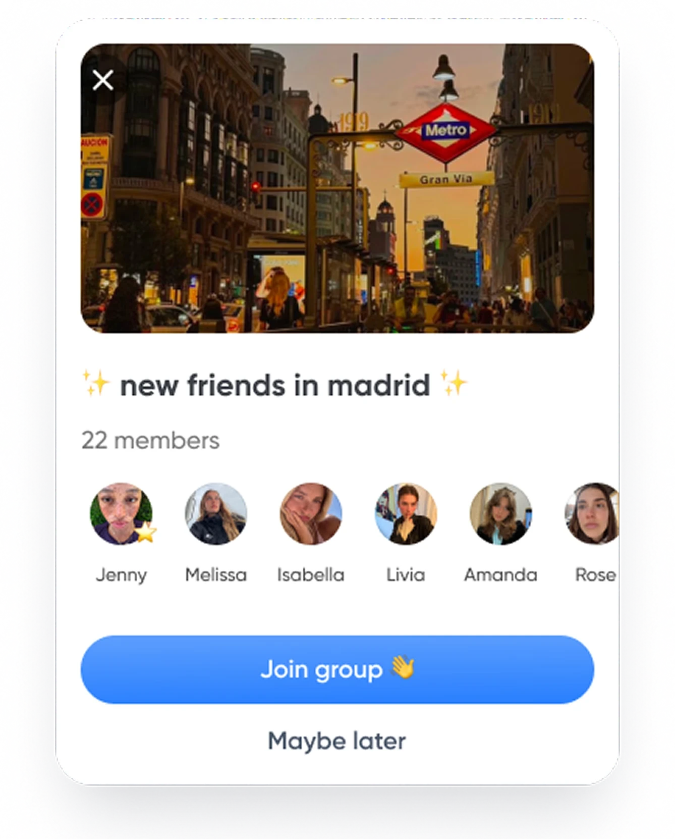 I moved from Spain to do my masters in Paris, and thanks to this app I met my best friends the first week!!! I joined a ''girls living in paris'' group and we all met up and are friends to this day:) super thankful!!